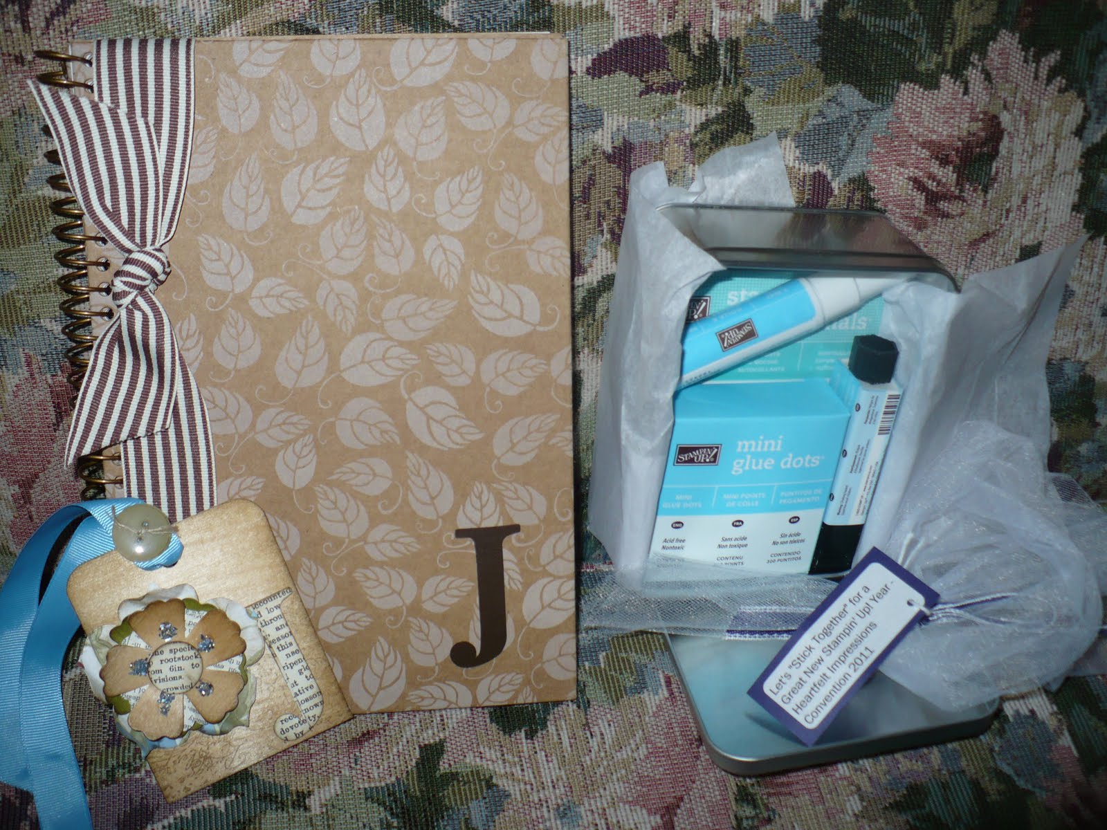 These are gifts from three levels of upline. Bonus! They are so generous. Leslie out did herself. She gave us the tin with all the adhesive in it. LOVE!!